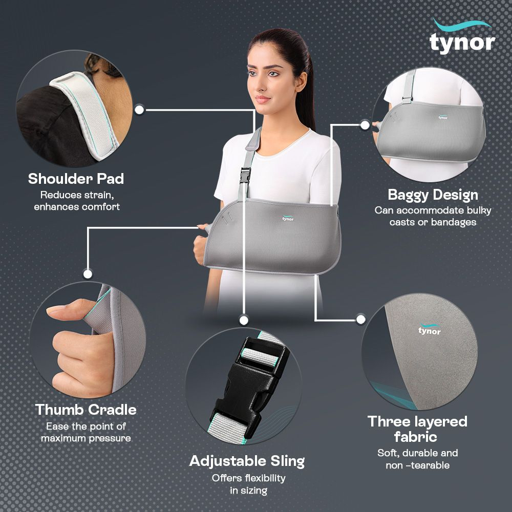Scientifically designed to give optimal support and immobilization to the fractured or post surgical arm. It maintains the arm at a 90-degree angle at the elbow joint which promotes both healing and comfort. The ingenious sling design promotes healing and comfort by securely holding the arm in a stable position.