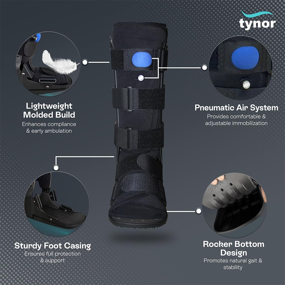 Designed to provide ankle deloading, immobilization and support to the fractured ankle/lower leg. Walker boot can be a substitute for a cast or can be used in case of early cast removal, It helps in early ambulation of the patient with ankle/lower leg fractures. With a wider rocker bottom, these boots promote a natural gait, reduced plantar pressure, enhanced stability and comfort to the lower leg. *Use this product under the guidance of a qualified doctor.