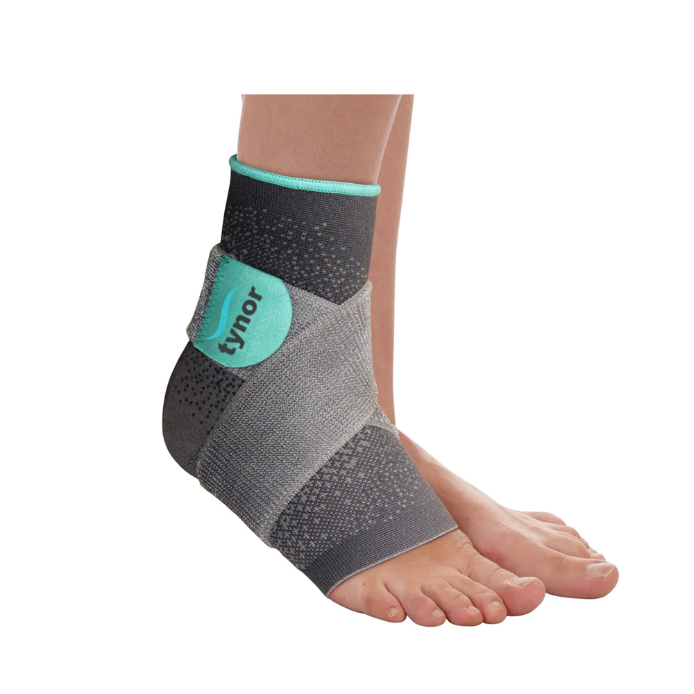 Designed to support, compress and partially immobilize the ankle following injury or sprain to control pain, oedema or inflammation. Composed of two components, compression sleeve and elasticized strap. The elasticized strap can be conveniently wrapped in a figure of 8 for strong and effective ankle support