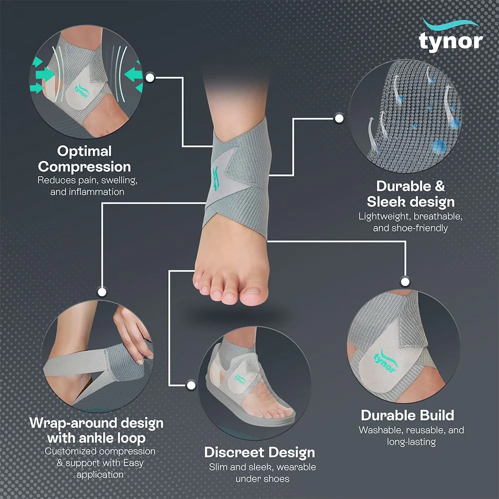 Tynor Ankle Wrap sleek is an effective device to support, compress and partially immobilize the ankle following injury or sprain to control pain, oedema or inflammation. Composed of two components, compression sleeve and elasticized strap. The sleeve is knitted in 3 dimensions so that it conforms to the complex anatomy of the anklet with exactness.