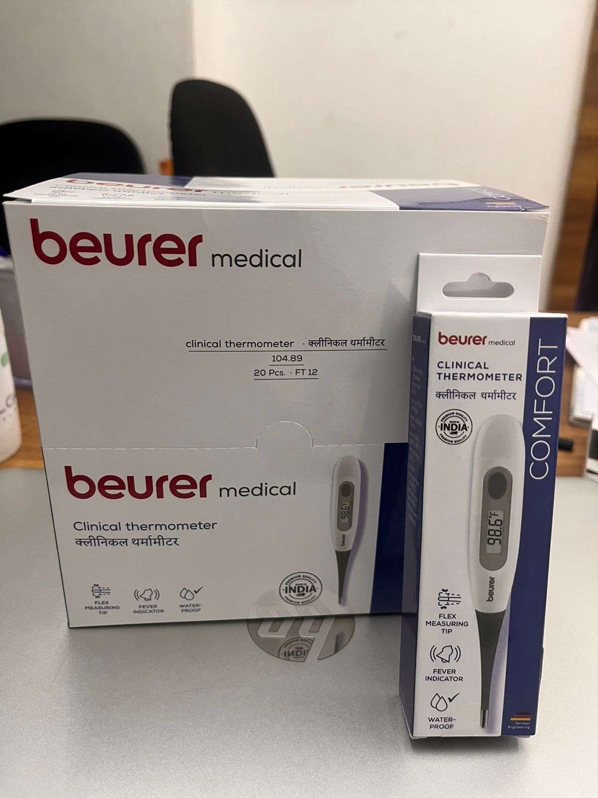 The clinical thermometer has an extra- flexible measuring tip.