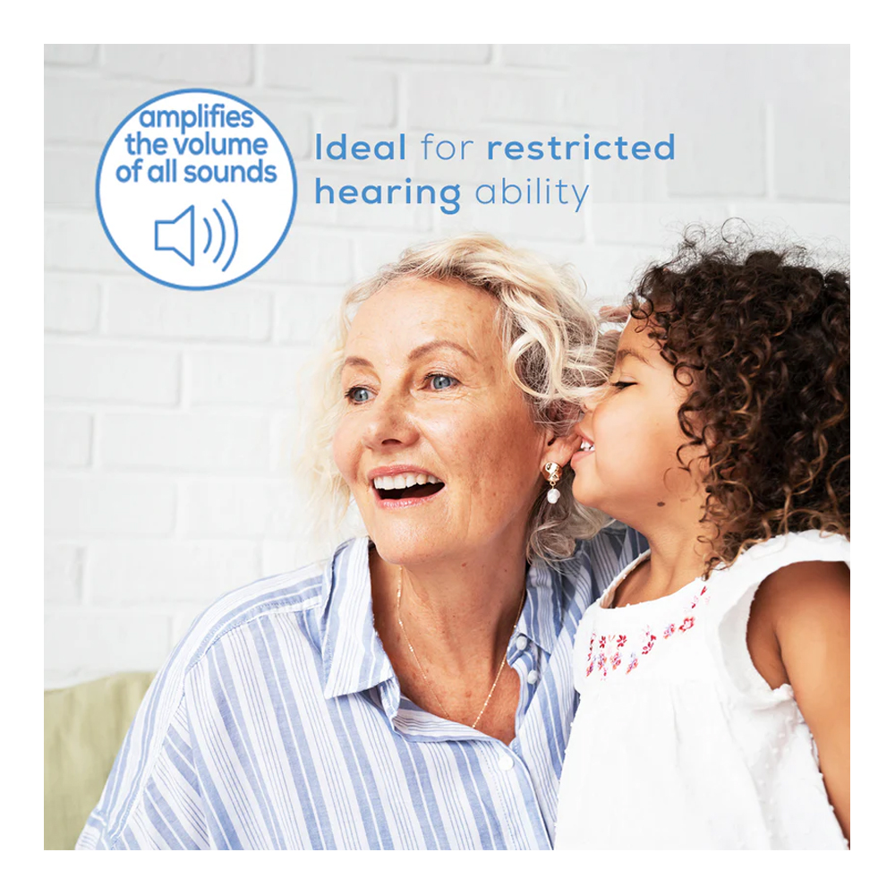 - Amplifies the volume of all sounds indoors and outdoors