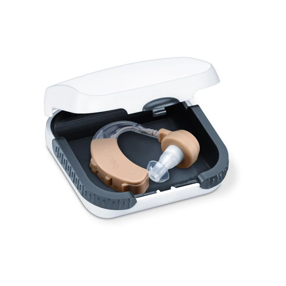 - People suffering from restricted hearing ability receive optimum support with our hearing amplifier. It can be individually adjusted to the ear canal. It amplifies the volume of all sounds indoors and outdoors.