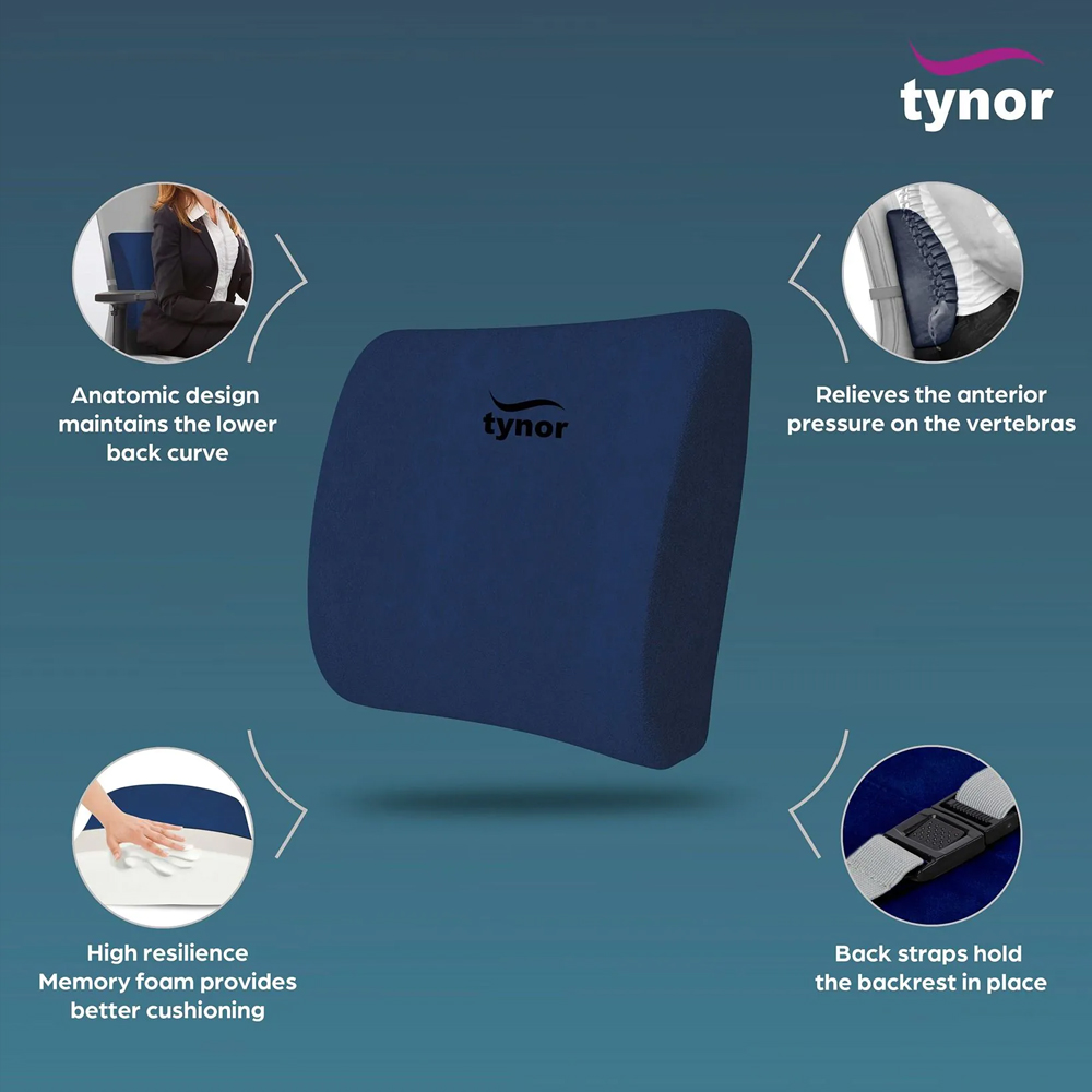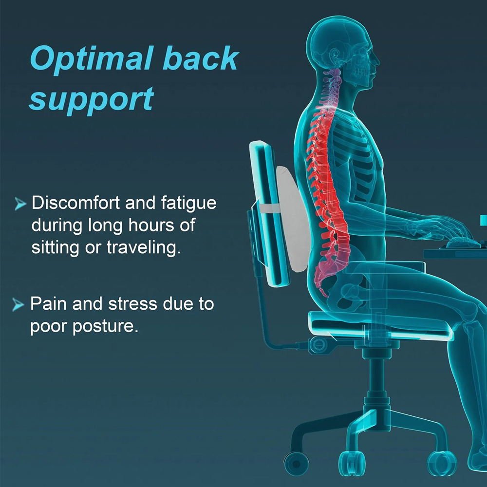 A portable back support maintains the lumbar spine in its neutral position and cradles the back to provide a pleasant sitting experience. It can transform any normal chair or car seat to provide optimum support to the lumbar region. Ideal for long-sitting users, in the office or in travel.