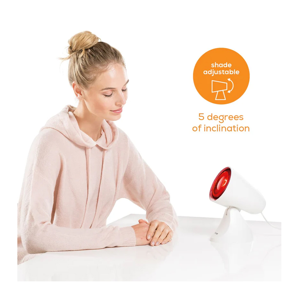 - This infrared lamp provides you with soothing heat for colds and muscle tension. You can find the right angle for you with 5 adjustable inclinations.