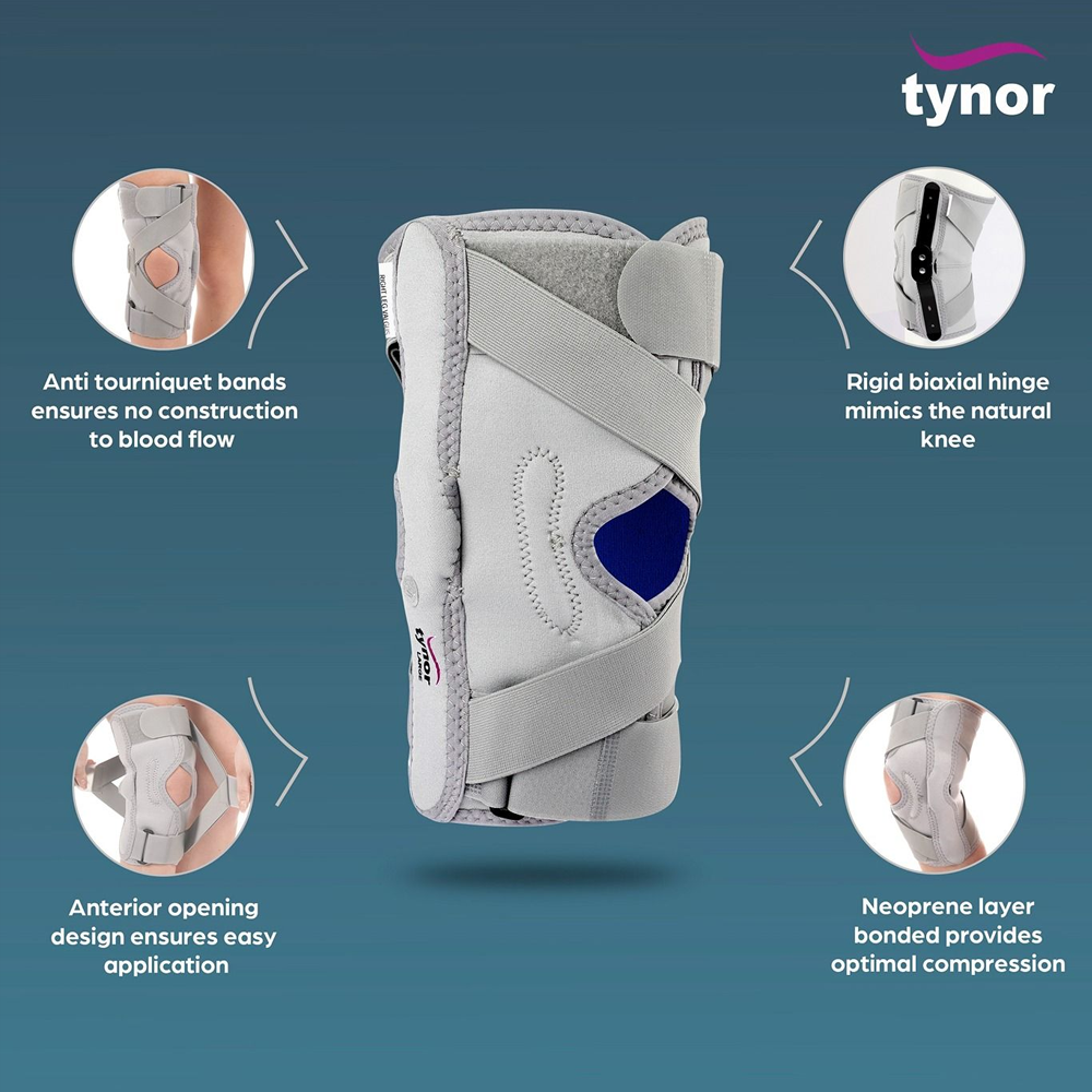 Scientifically designed to provide a counter force to correct varus or valgus thrust and some offloading action. It helps to allay pain within a few weeks of use. It can also correct mild to medium varus/ valgus deformity of the knee with prolonged use. It offers the advantage of controlled compression around the knee and the rigid side support of a splint. It allows normal flexion and free movement of the knee joint.