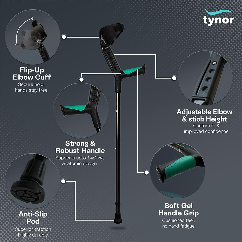 Tynor Elbow Crutch is a very sophisticated walking aid designed to provide full weight bearing when one or both legs are physically challenged because of a nervous disorder, fracture, disease, injury etc. More and more professionals prefer usage of elbow crutch over the conventional axillary crutch because of greater confidence of the patient, lesser fatigue and trendy appearance.