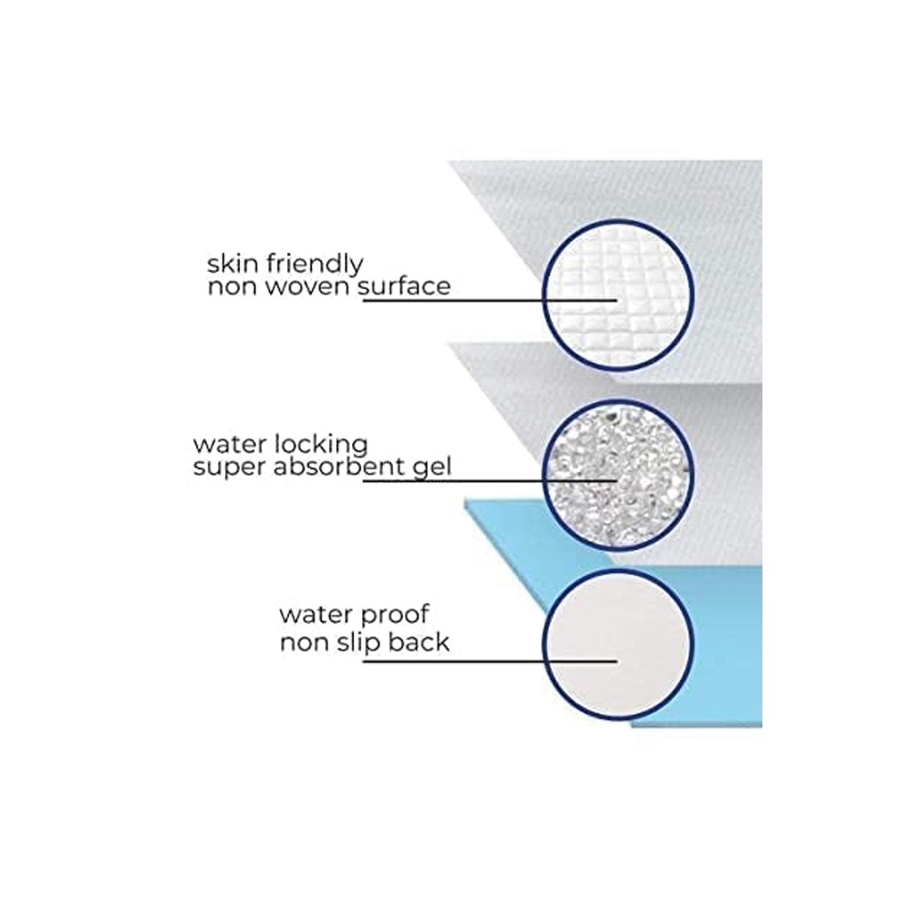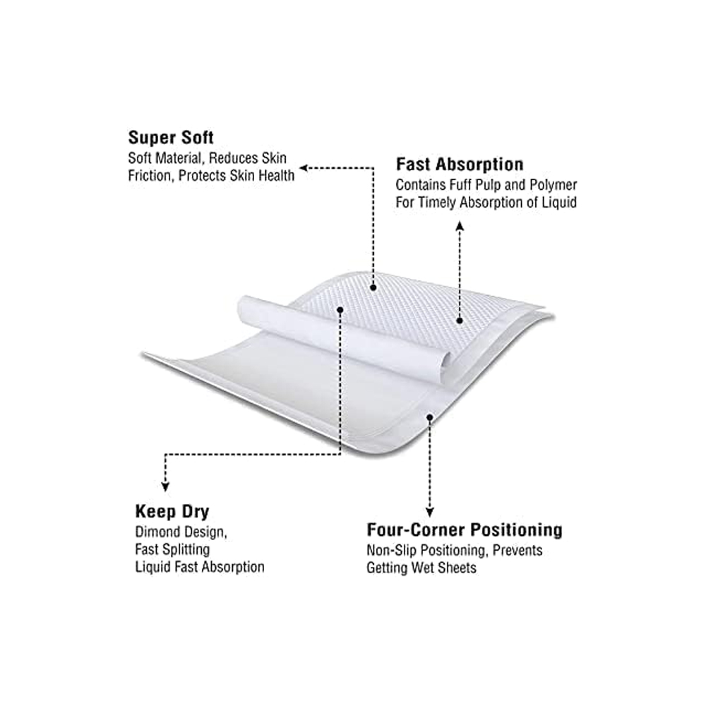 Mammies Disposable Under Pads offer a comfortable and hygienic solution for managing incontinence, medical procedures, or post-surgery care. Designed with a soft, skin-friendly non-woven surface, these pads reduce skin friction and protect skin health, making them ideal for sensitive users. The core is made of a powerful combination of fluff pulp and super absorbent polymer (SAP), which locks in moisture quickly and efficiently, ensuring dryness and comfort. The diamond-shaped embossing promotes fast liquid dispersion, while the waterproof, non-slip backing keeps the pad securely in place and prevents leakage onto surfaces. Each pad measures 60 x 90 cm, providing ample coverage for beds, wheelchairs, or examination tables. With four-corner non-slip positioning and a leak-proof design, Mammies underpads are perfect for hospitals, clinics, homes, or travel use. This pack contains 10 single-use pads that combine durability, superior absorption, and comfort to deliver peace of mind and cleanliness in any setting.
